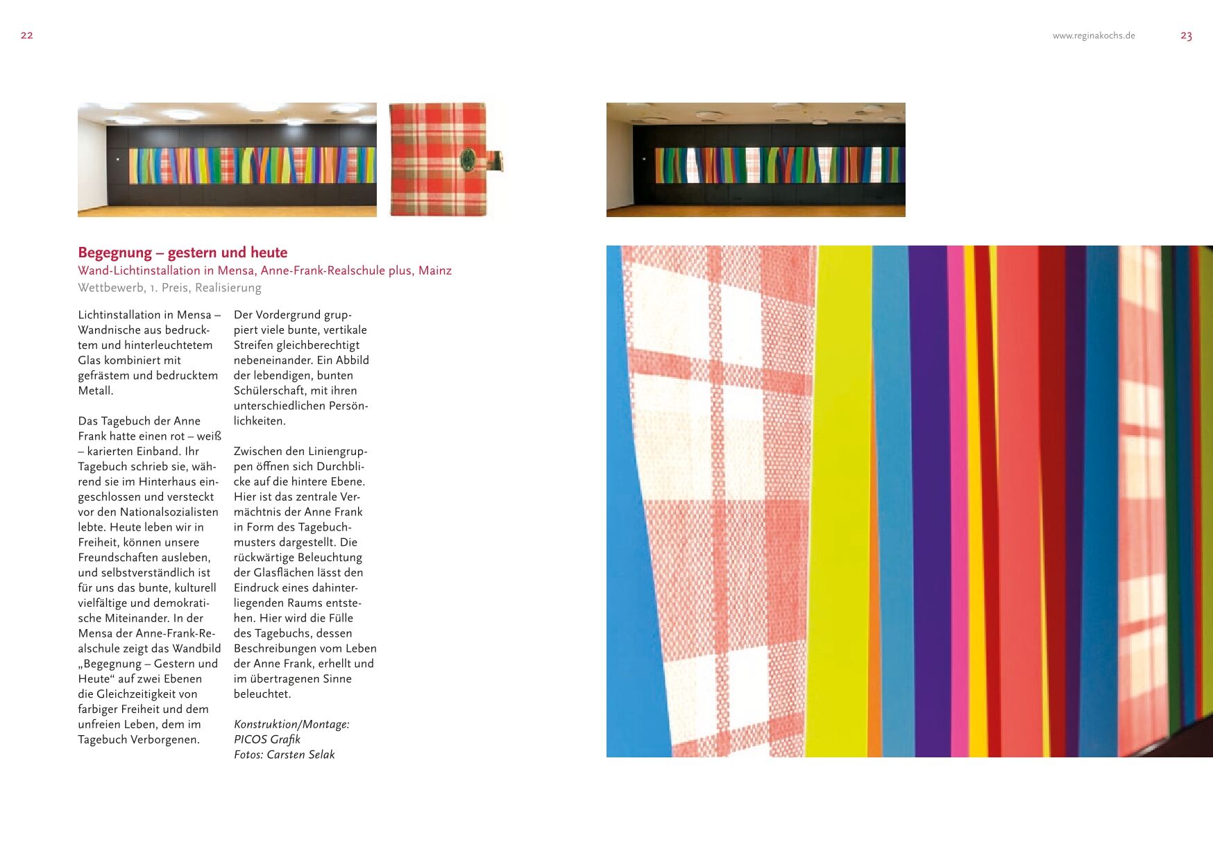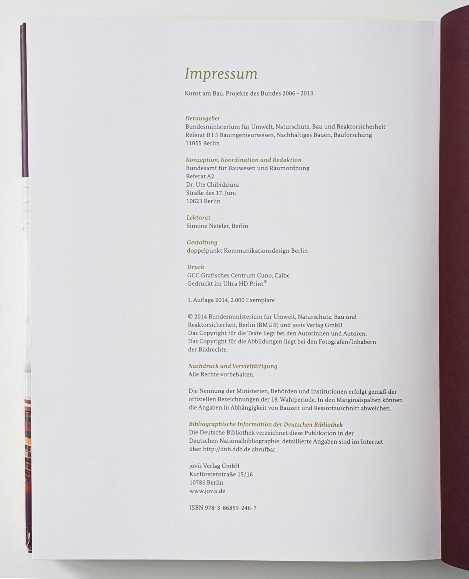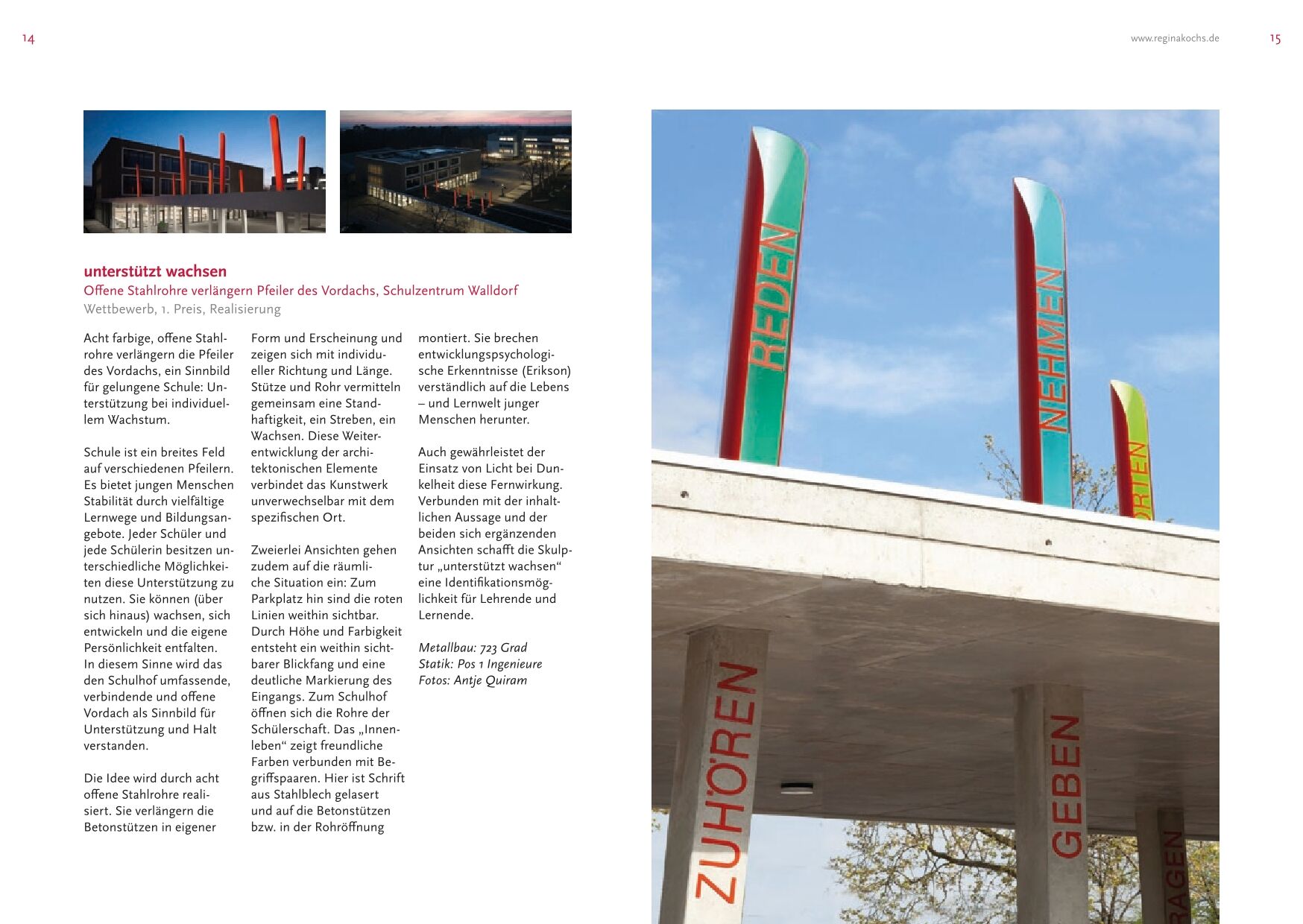 "Vernetzung" S. 192-195 in "Kunst am Bau, Projekte des Bundes 2006-2013" eine ausführliche Dokumentation von knapp 60 realisierten Werken. Herausgeberin: BM für Umwelt, Naturschutz, Bau und Reaktorsicherheit, Redaktion: BBR. Berlin 2014. ISBN 978-3-86859-246-7