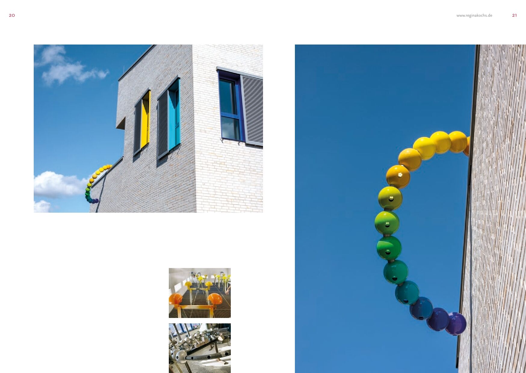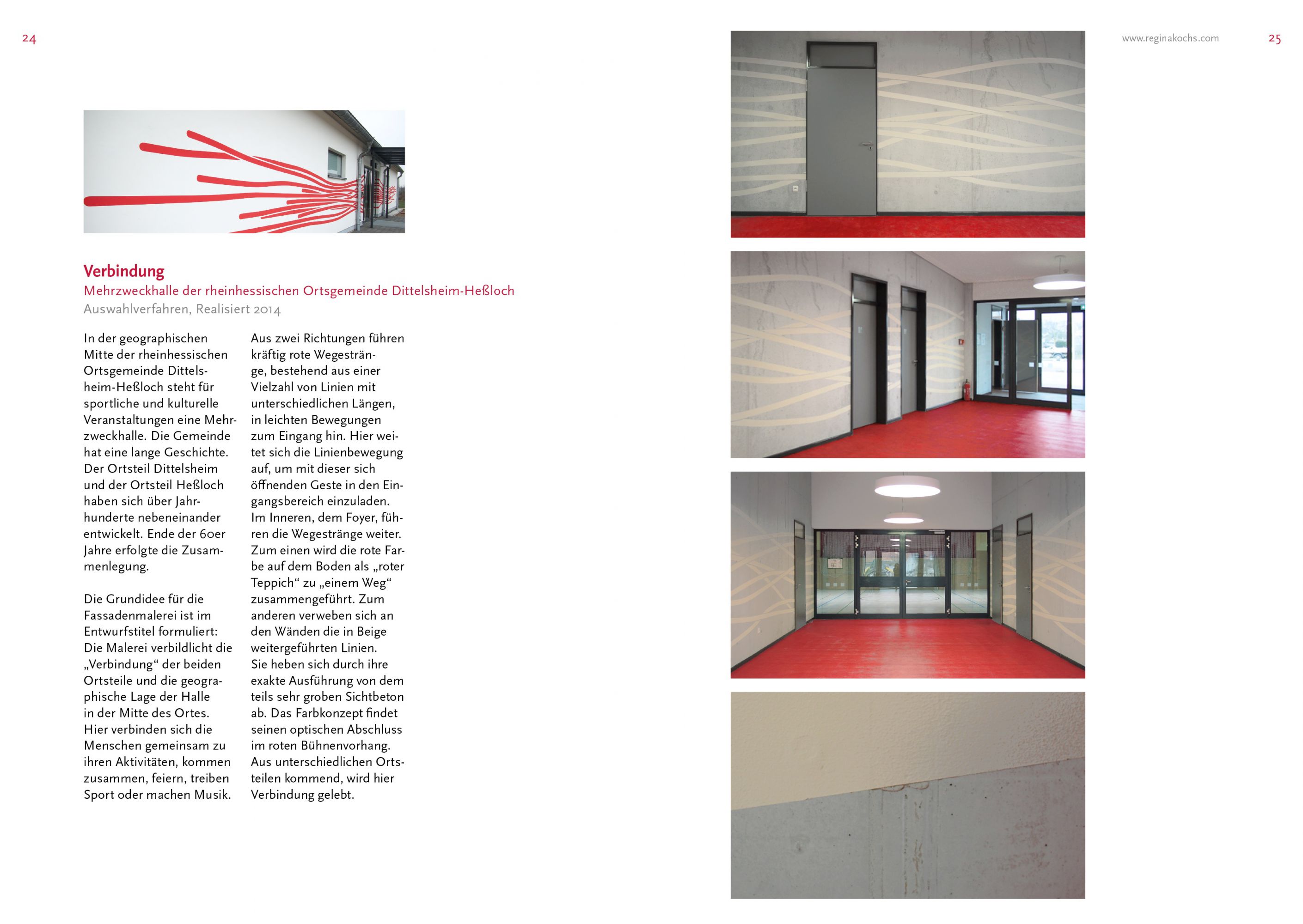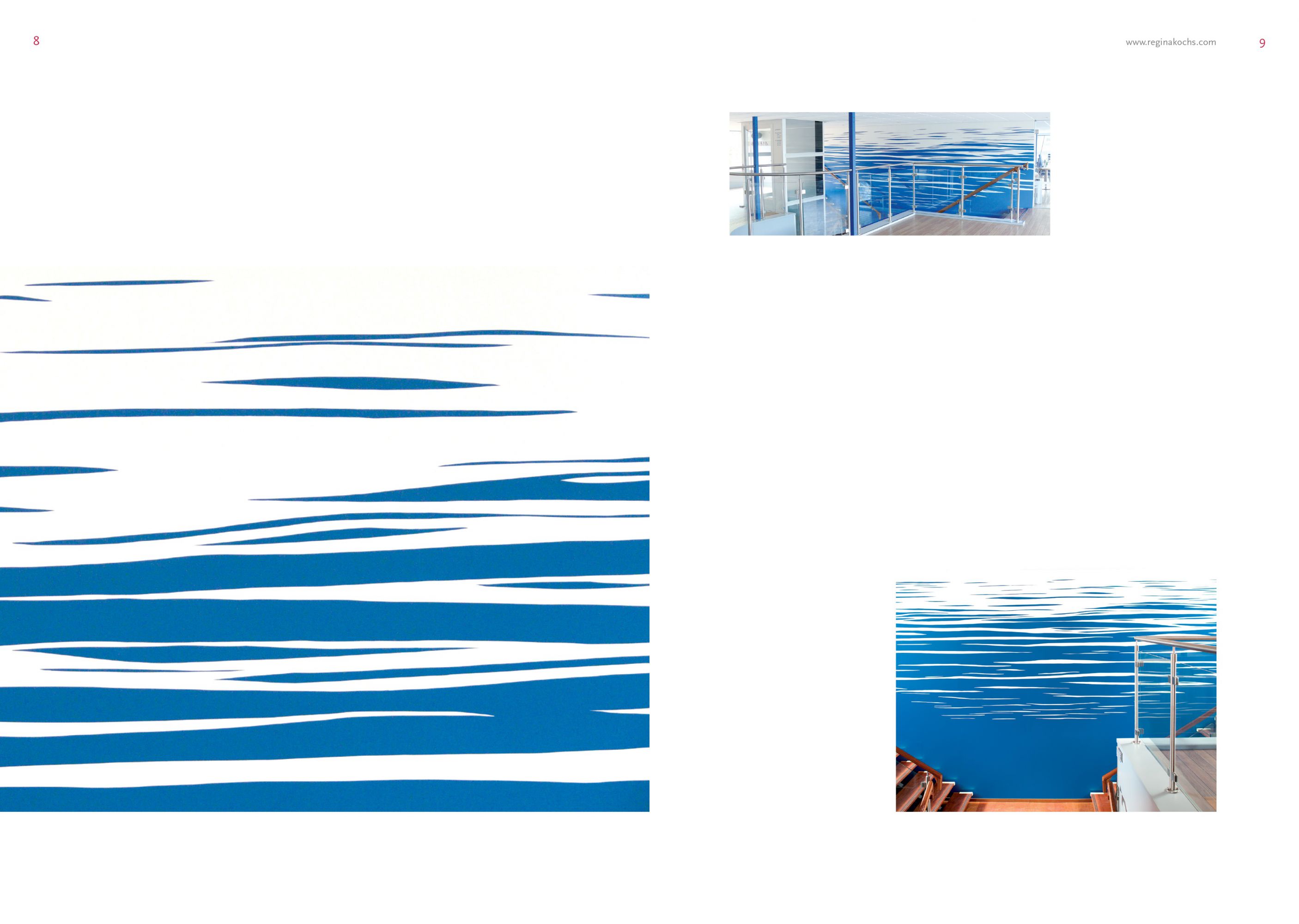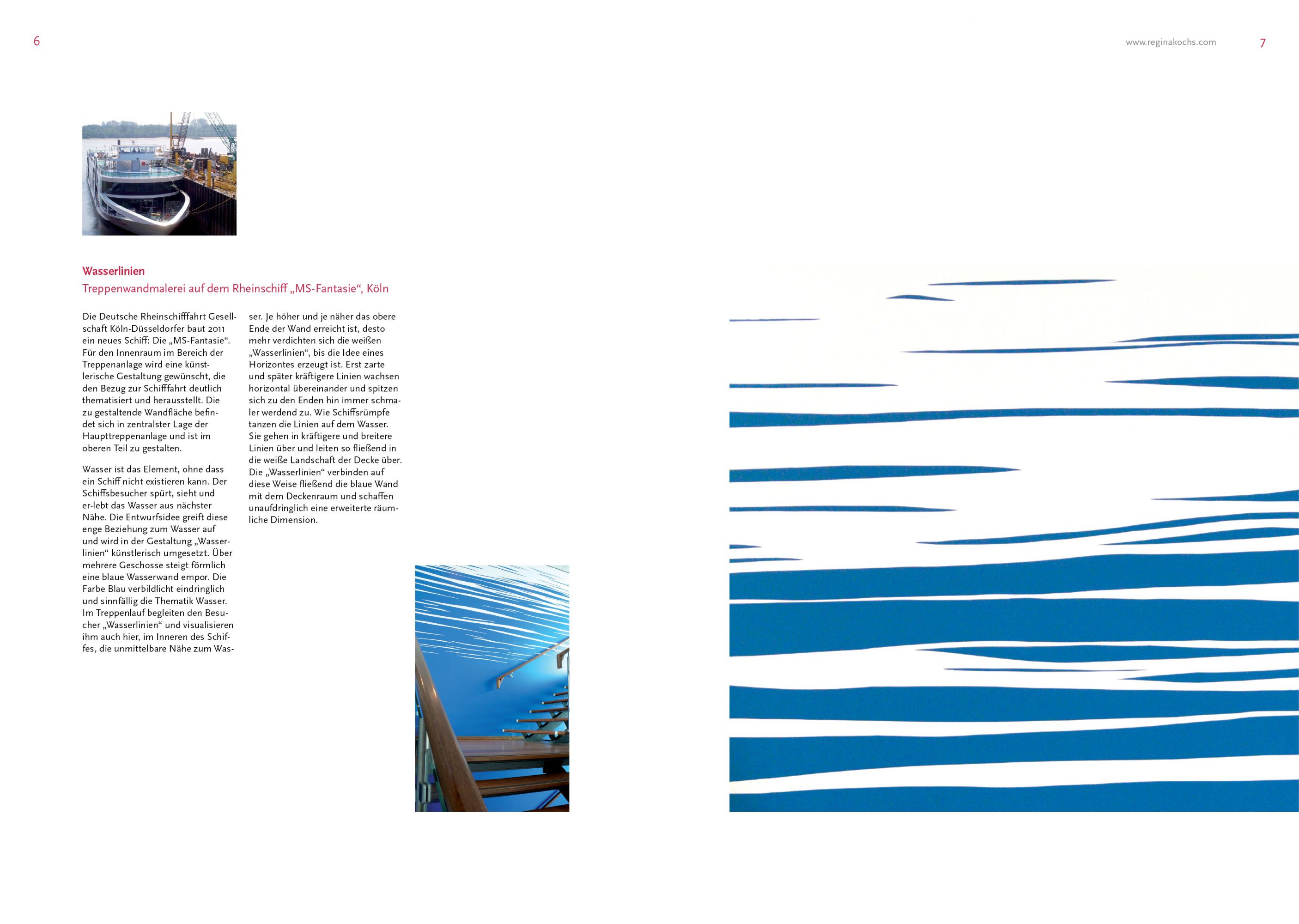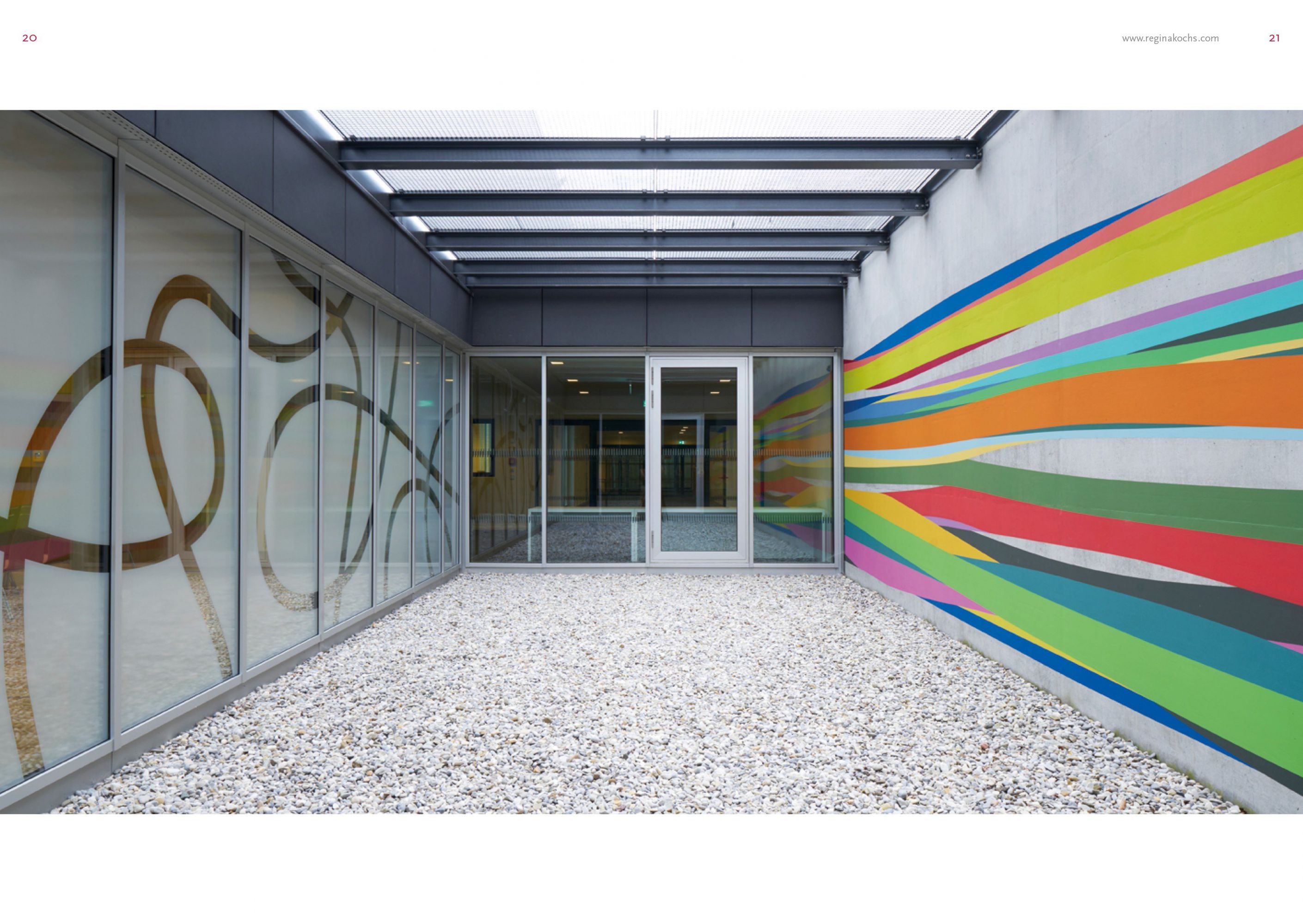 Die Flur begleitende Malerei "Schwingungen" für die Hörspielstudios des WDR, die gewonnene Fassadenmalerei im Forschungszentrum Jülich, der malerische Beitrag auf dem Schiff der KD und weitere große und kleine Kunst am Bau Projekte...