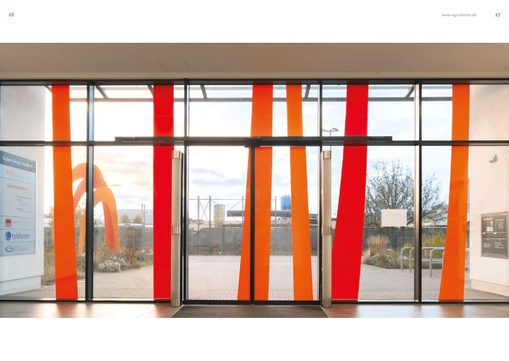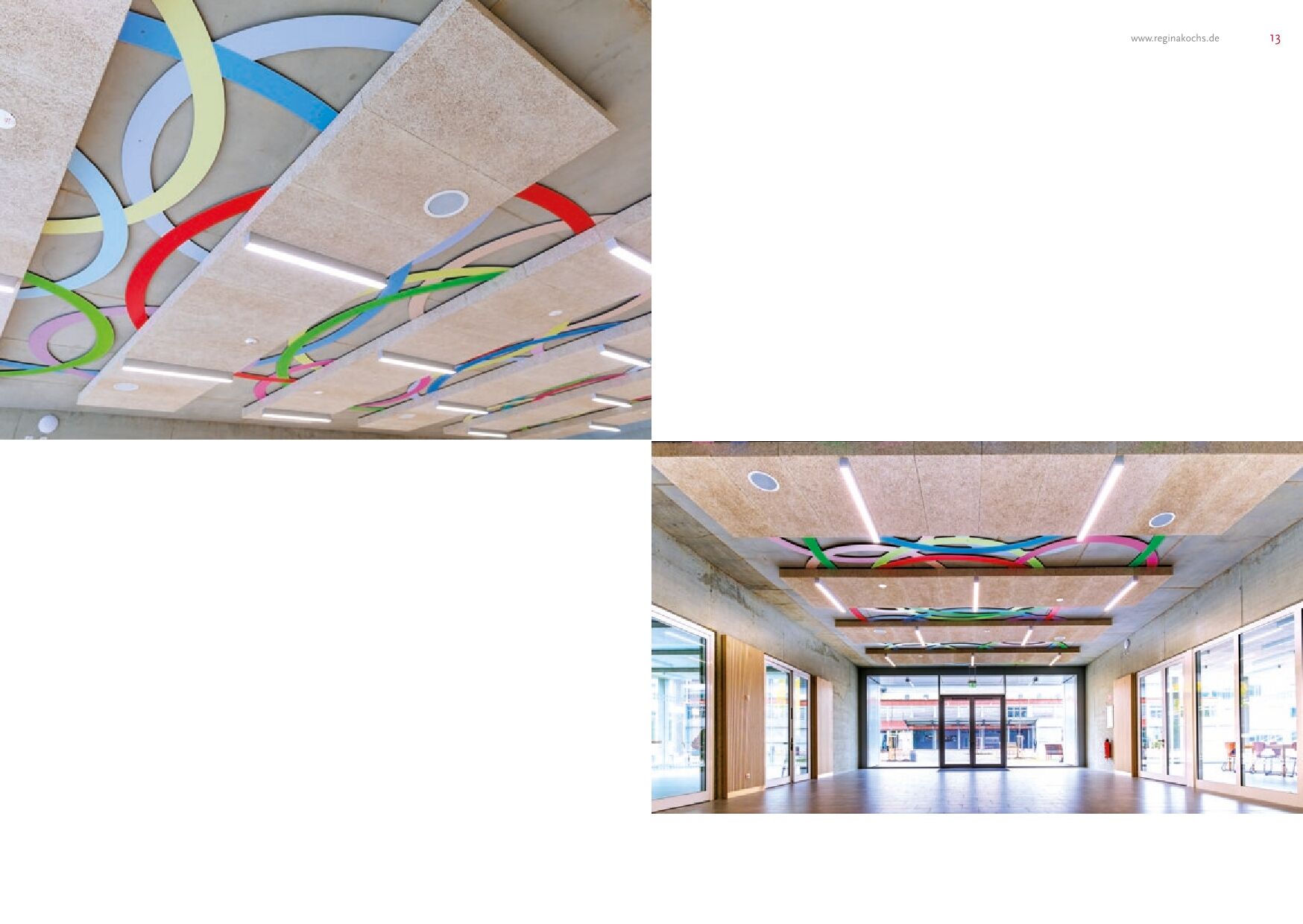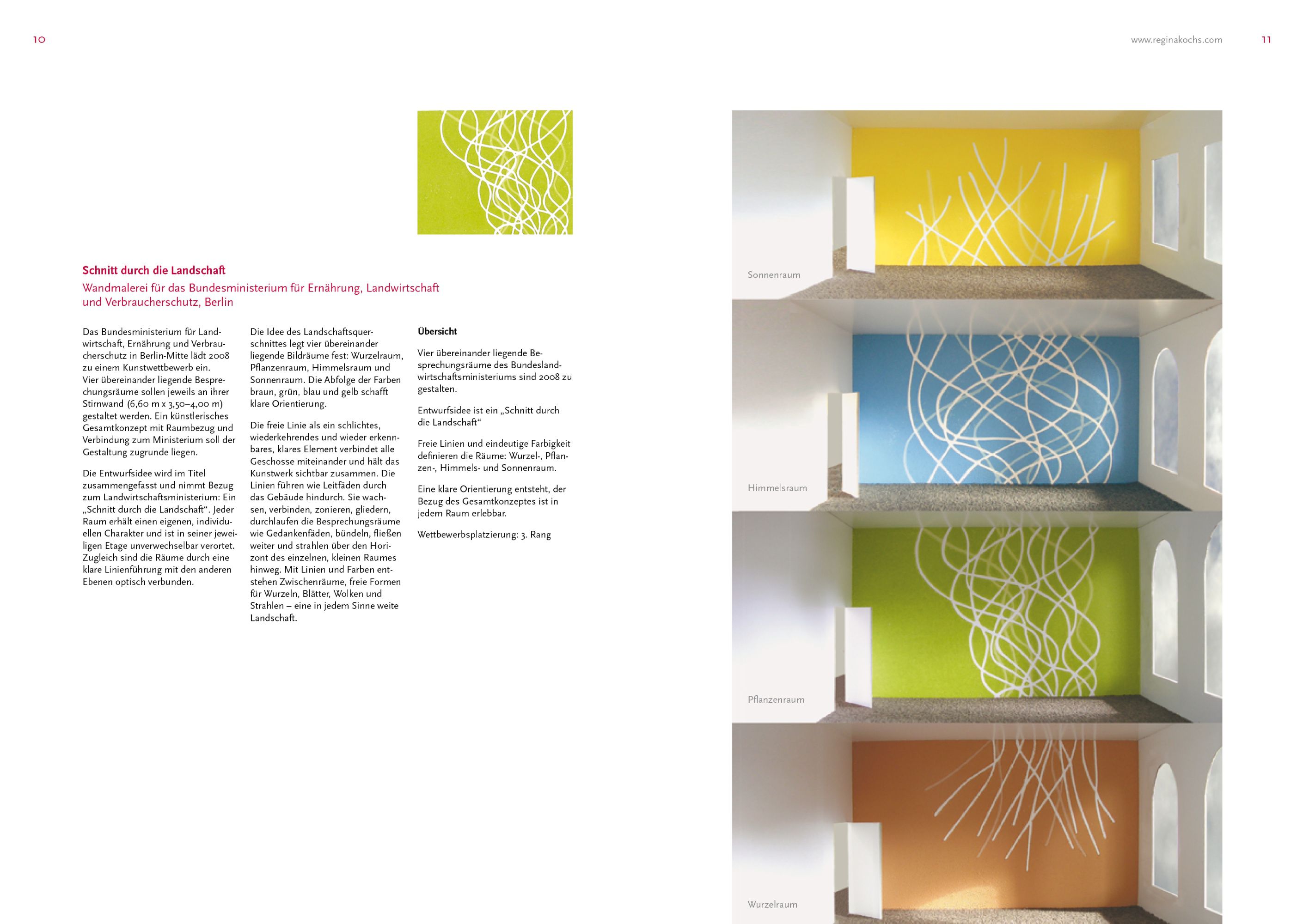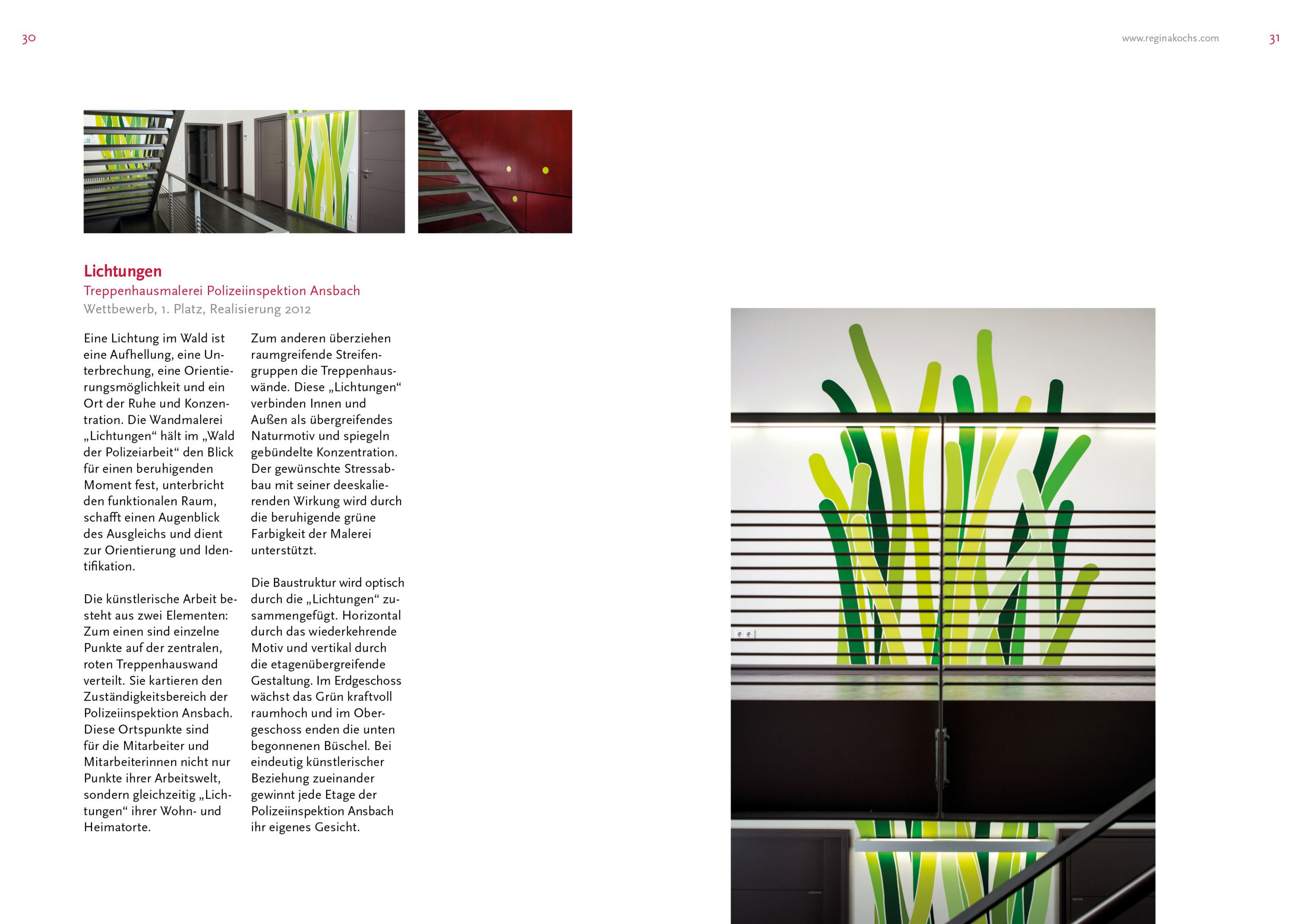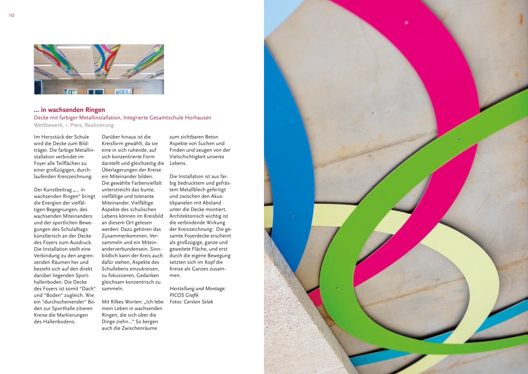 Die Flur begleitende Malerei "Schwingungen" für die Hörspielstudios des WDR, die gewonnene Fassadenmalerei im Forschungszentrum Jülich, der malerische Beitrag auf dem Schiff der KD und weitere große und kleine Kunst am Bau Projekte...