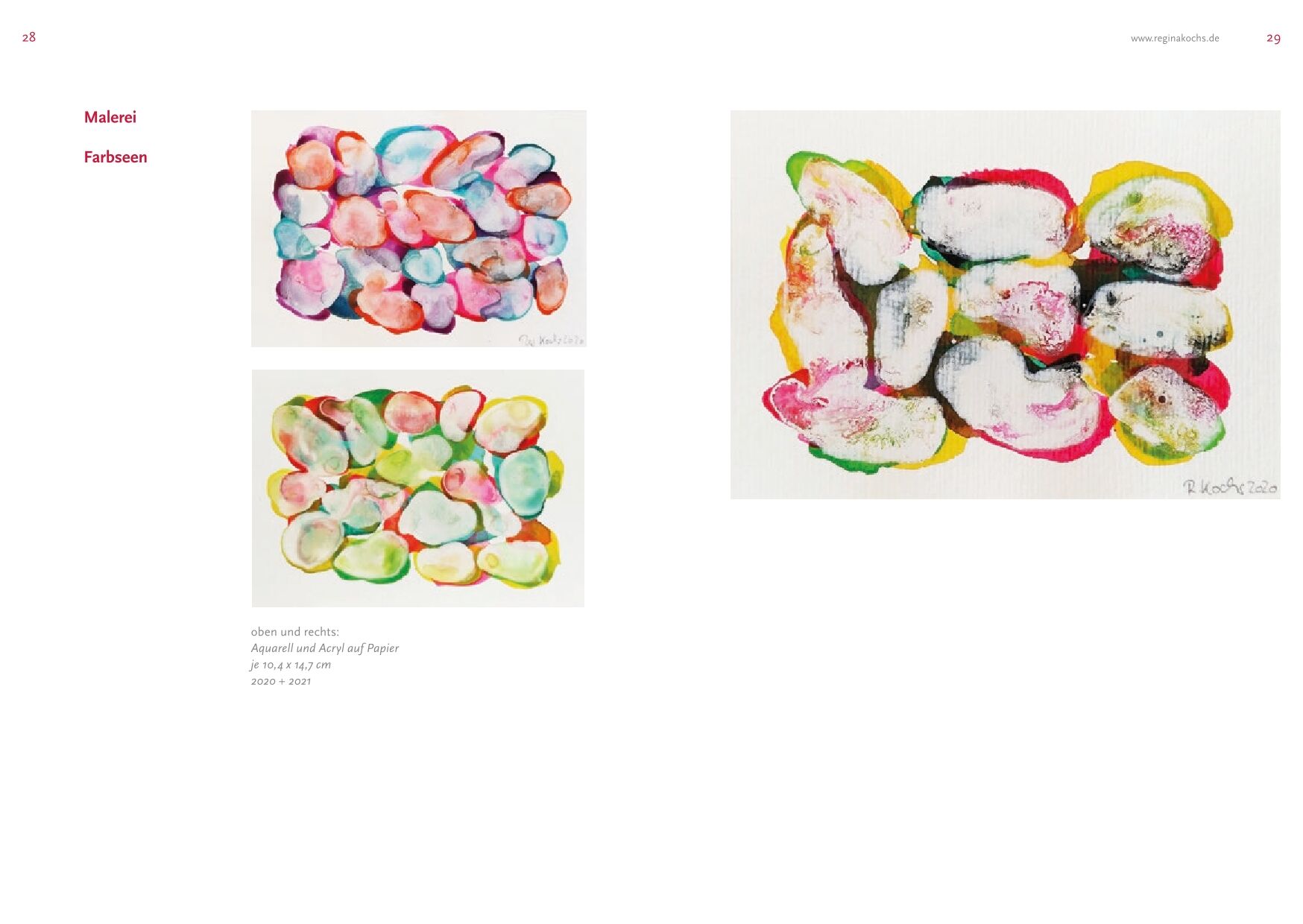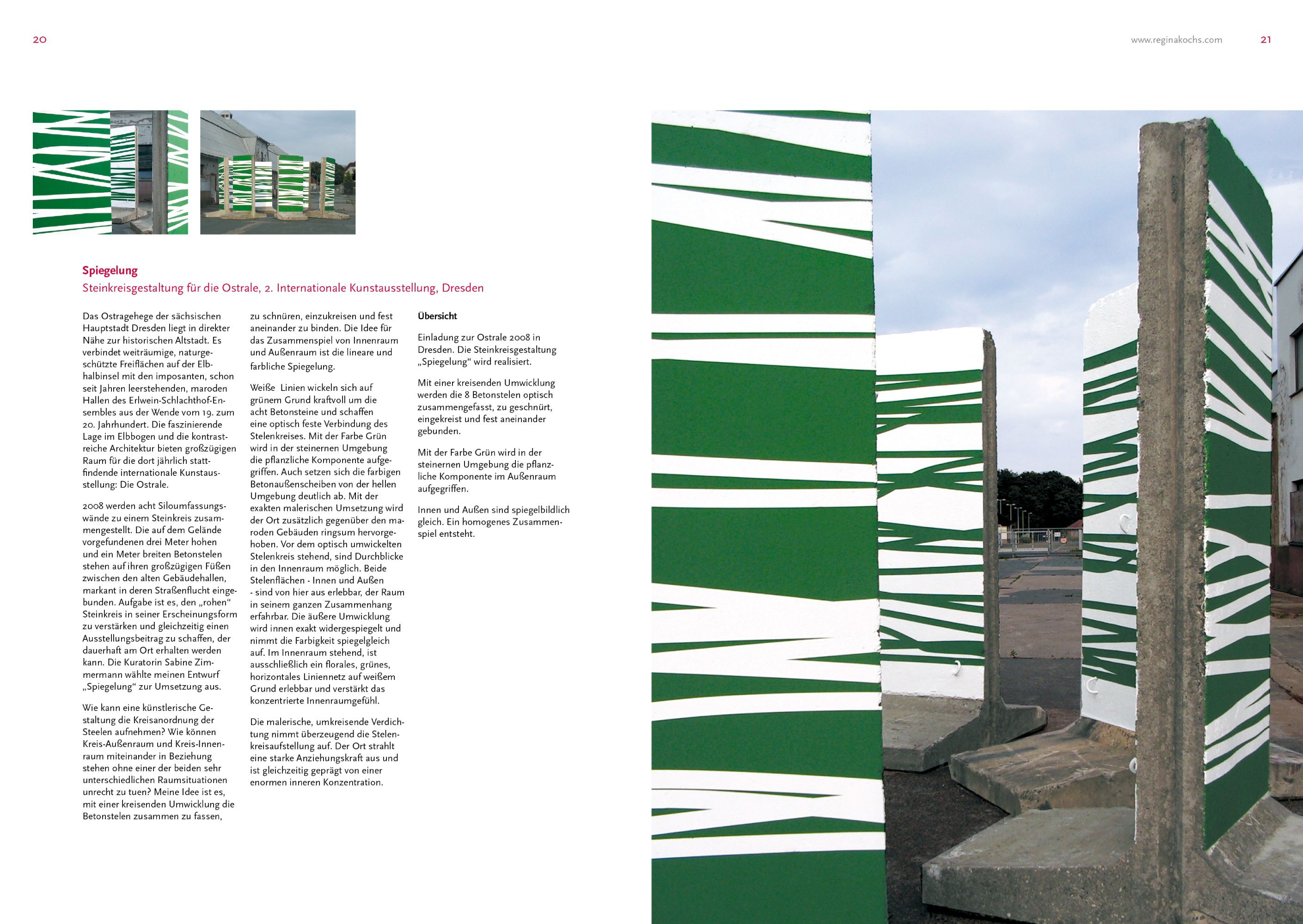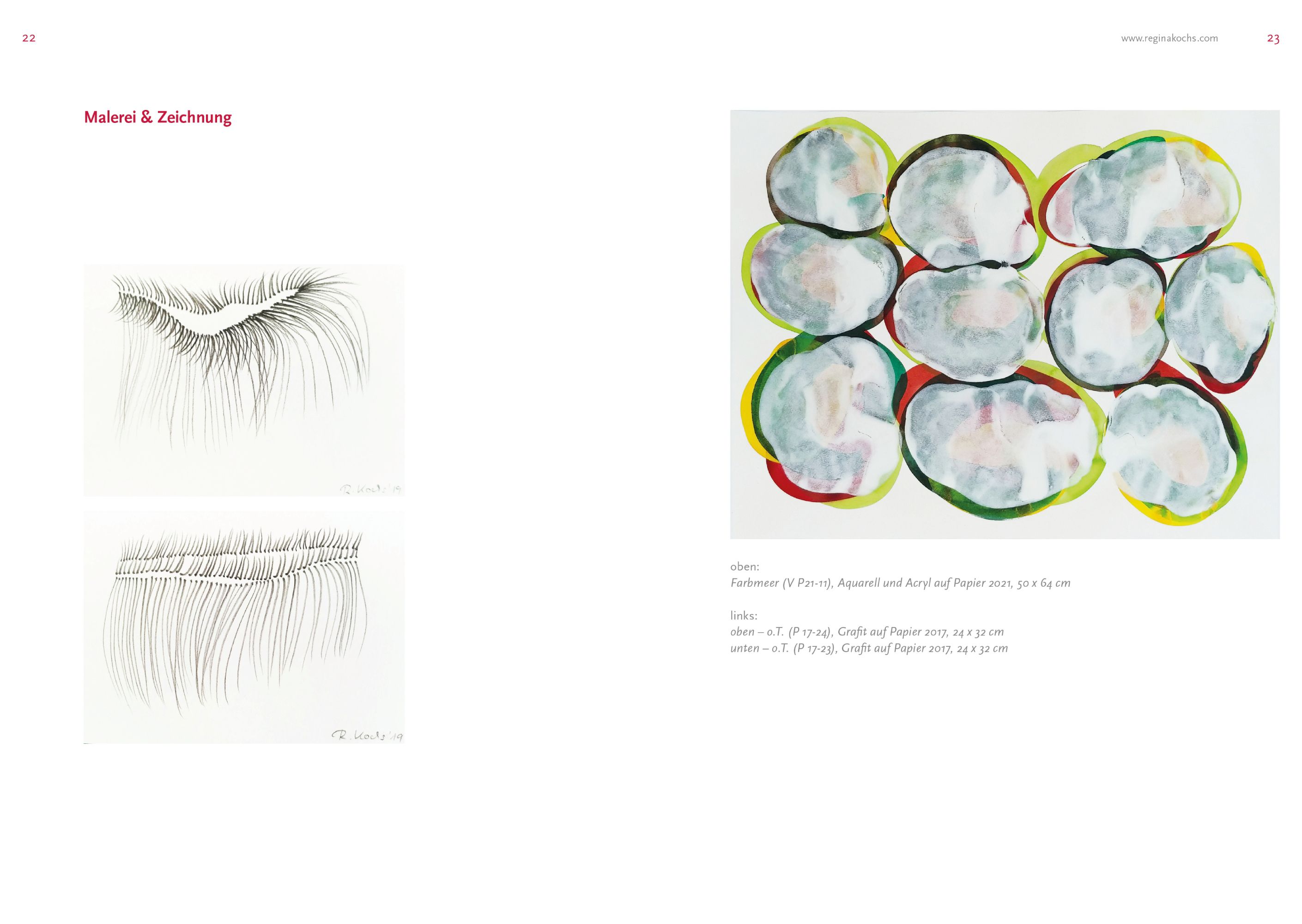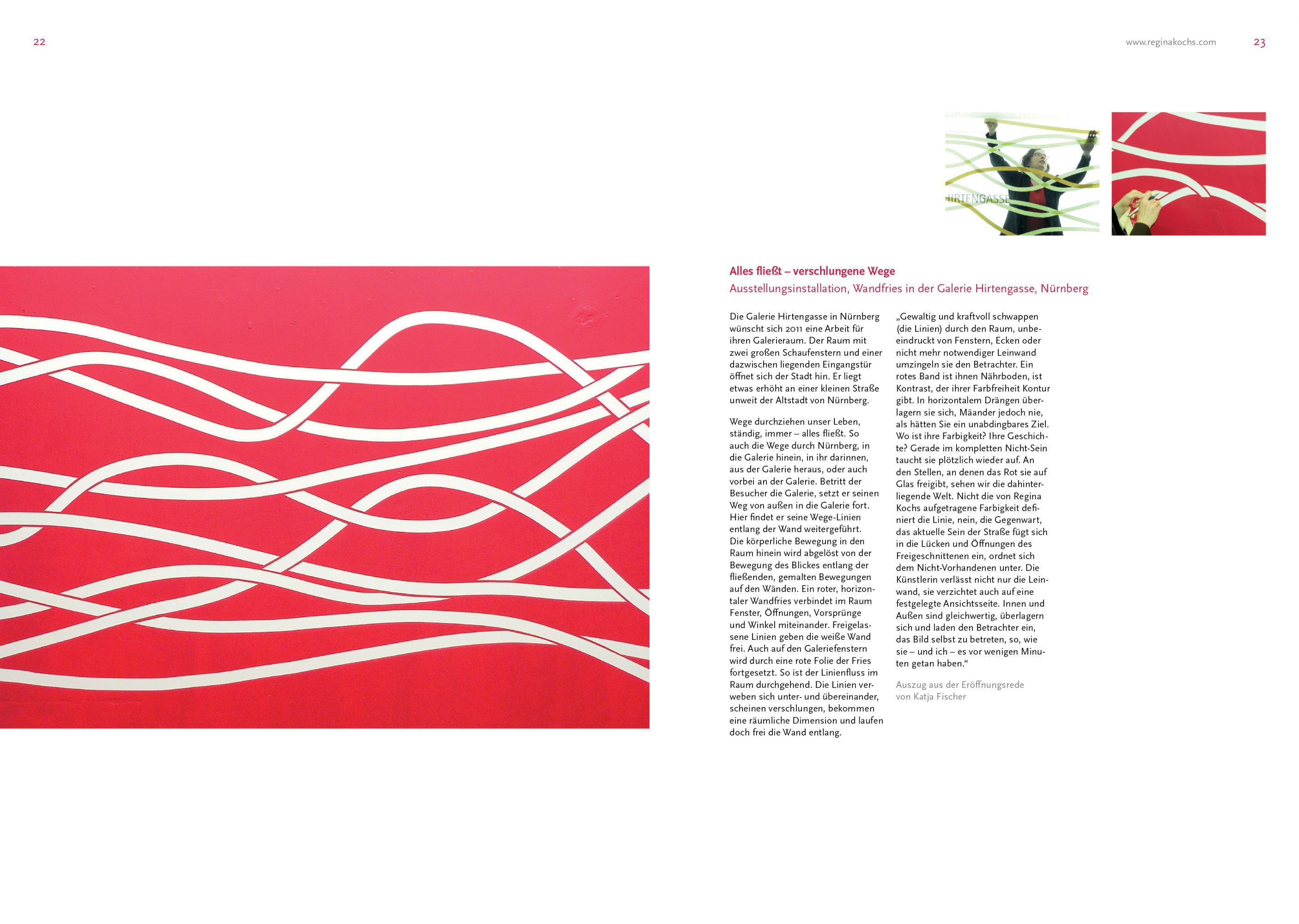 Großflächige Wandmalereien, wie die mehrgeschossige Arbeit "Verdichtung" für die Stiftung der Stadtsparkasse Köln und weitere temporäre Ausstellungs- und Wettbewerbsbeiträge sind dokumentiert. Darüber hinaus Malereien und Aquarelle, Linien, Kreise, Ovale...