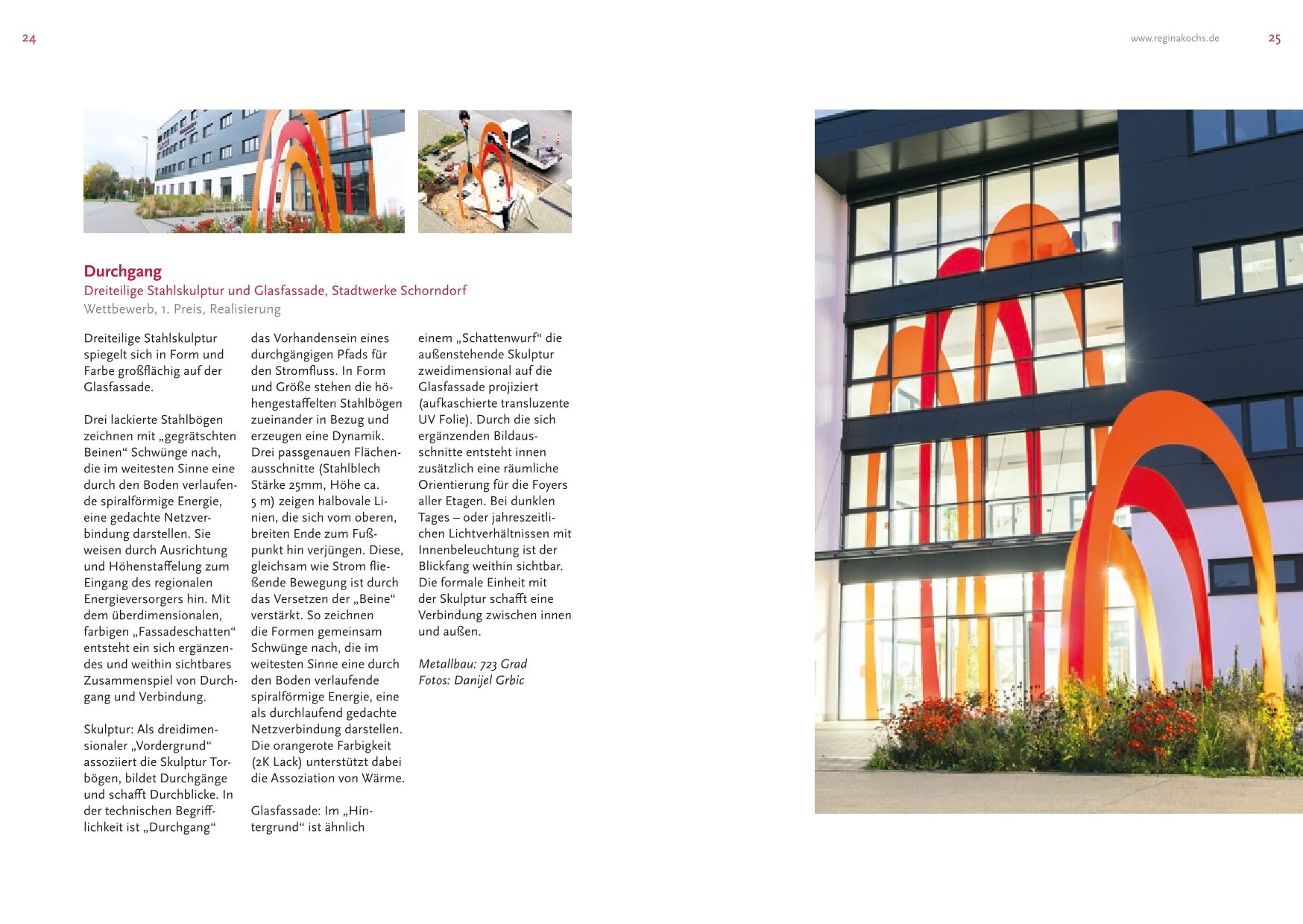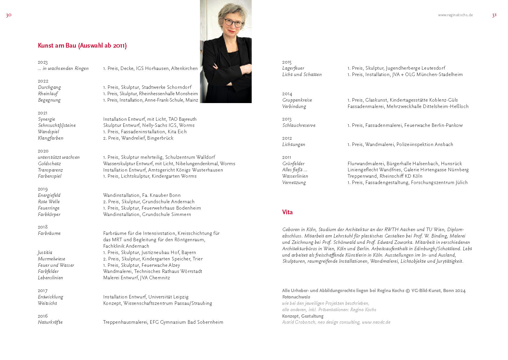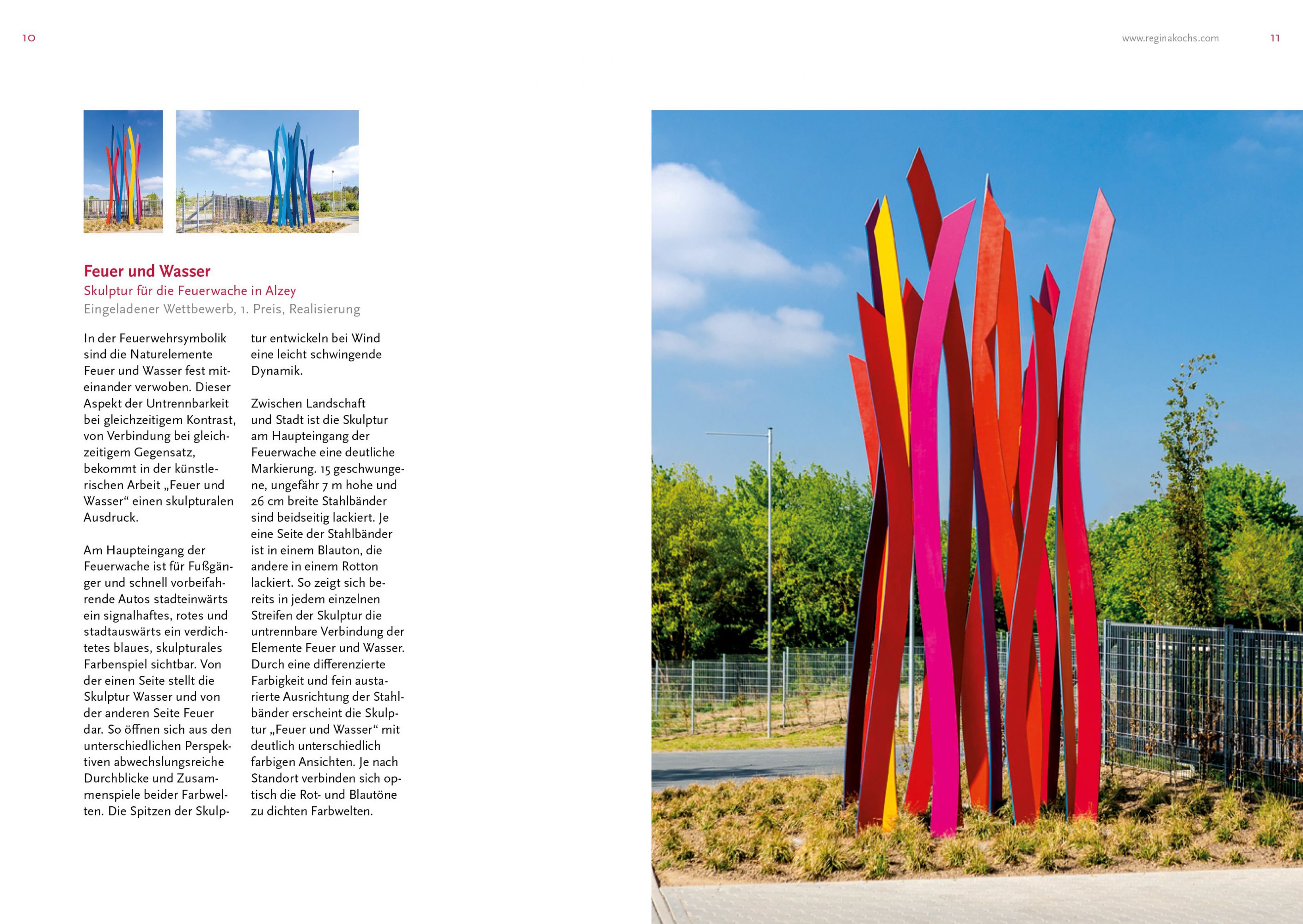 Erste skulpturale Arbeiten und Wettbewerbsgewinne, wie "Licht und Schatten" in der JVA München Stadelheim und "Schlauchreserve" an der Feuerwache Berlin Pankow sind abgebildet. Ebenso Ausstellungsbeiträge und neue Papierarbeiten...