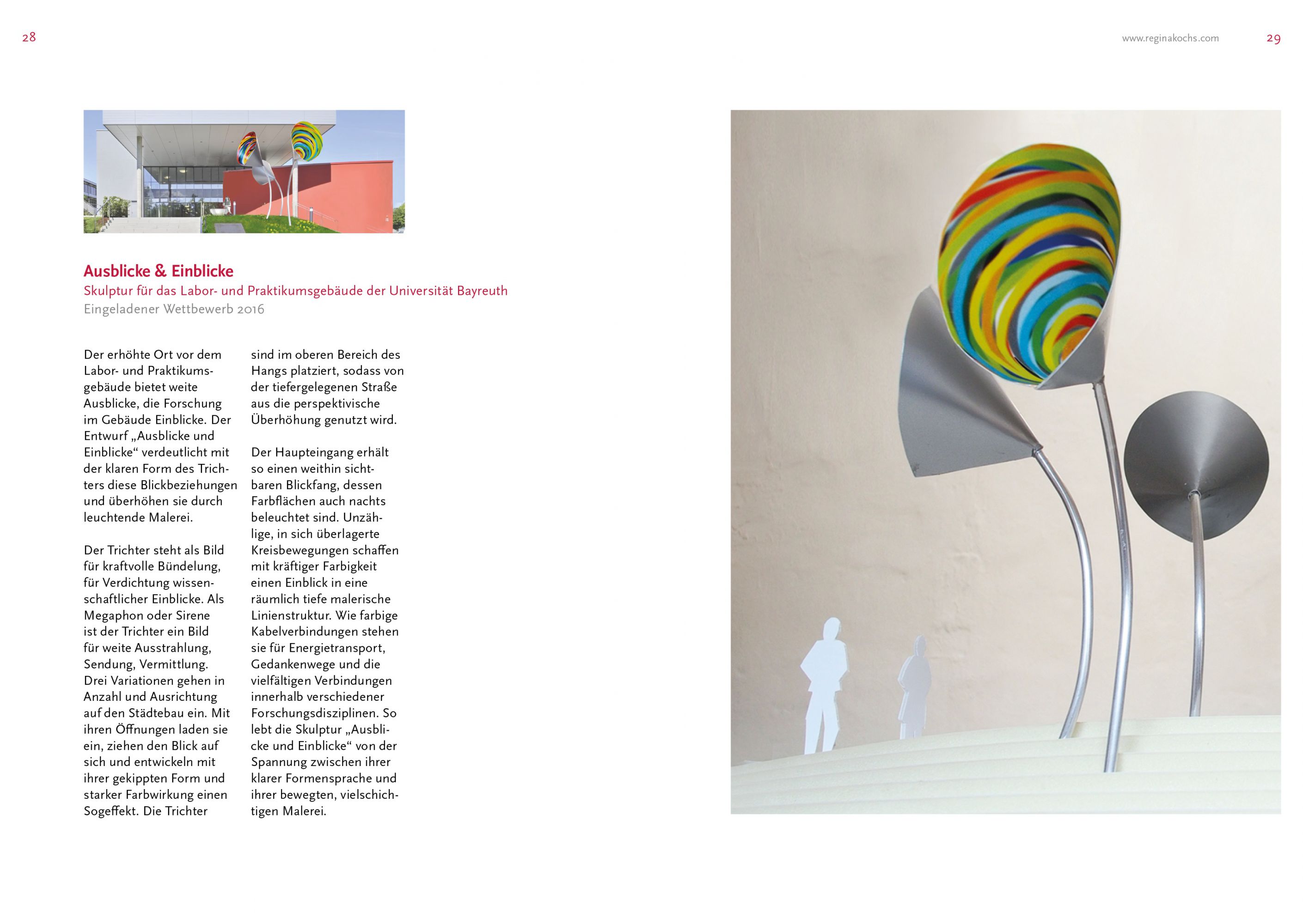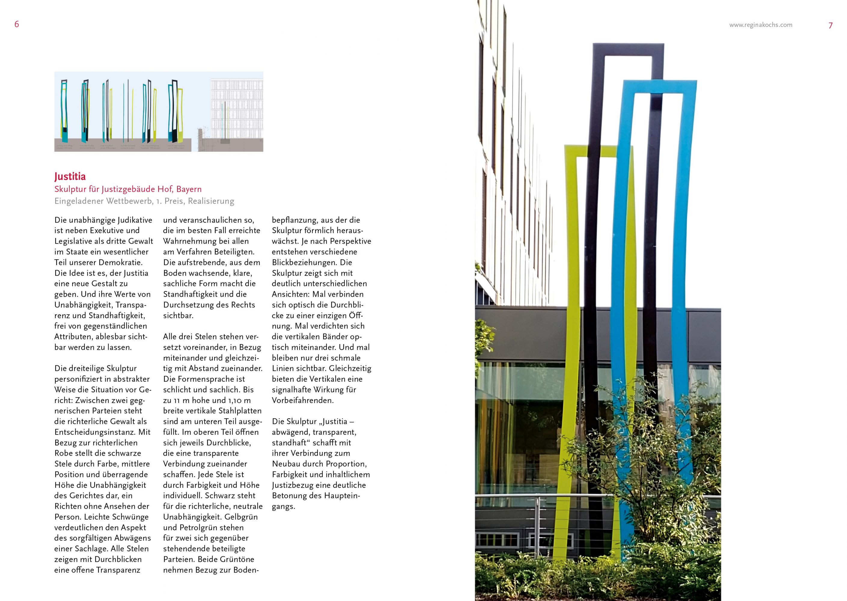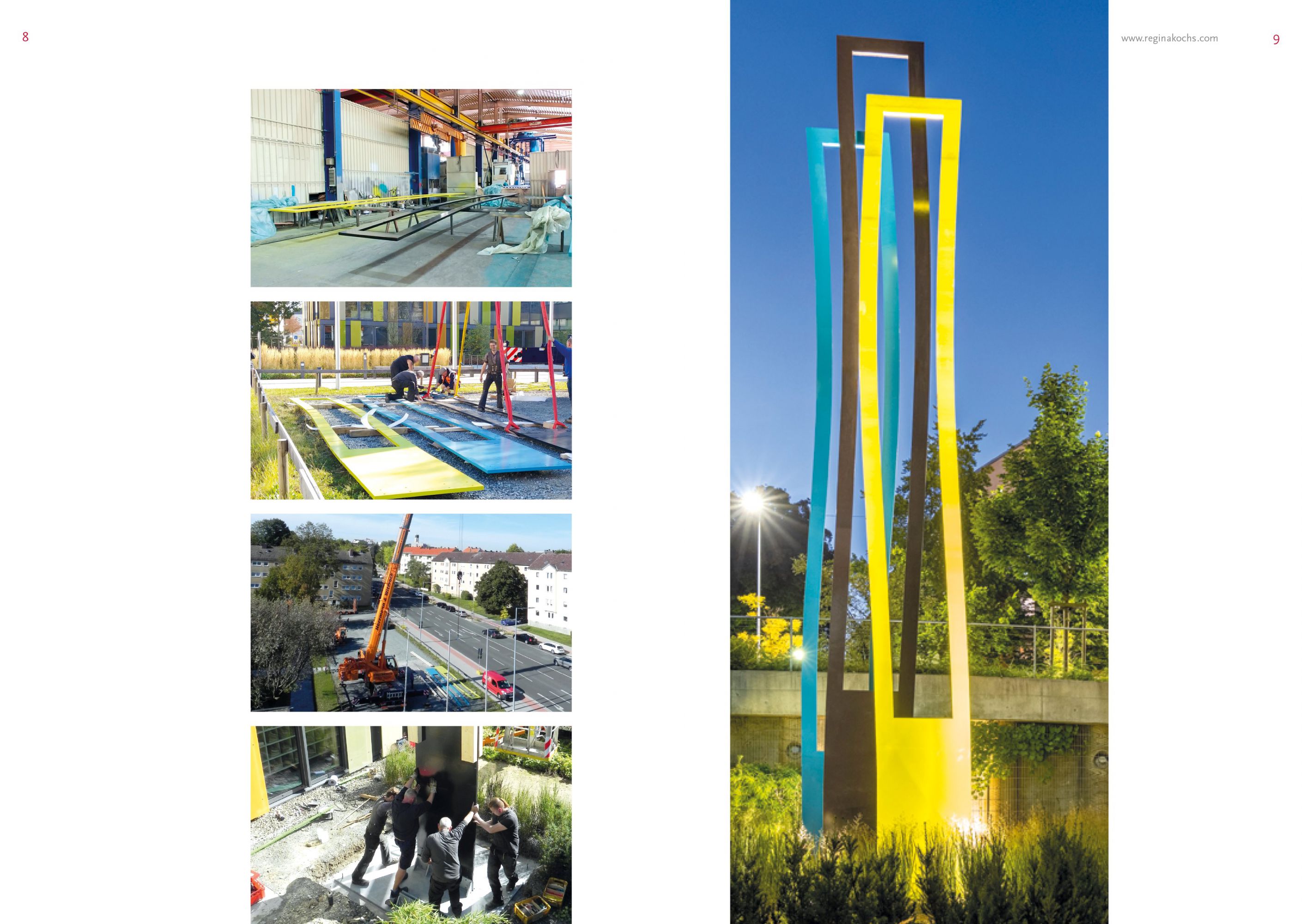 Erste skulpturale Arbeiten und Wettbewerbsgewinne, wie "Licht und Schatten" in der JVA München Stadelheim und "Schlauchreserve" an der Feuerwache Berlin Pankow sind abgebildet. Ebenso Ausstellungsbeiträge und neue Papierarbeiten...