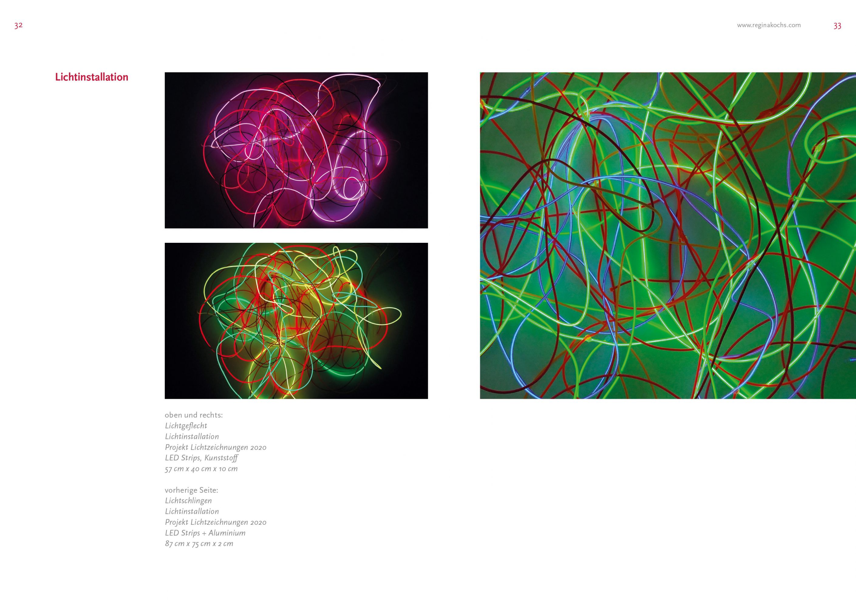 Neue Skulpturen mit Licht sind in dieser Broschüre versammelt: "Lichtlinie", "Lichtdusche", "Lichtraum" und andere leuchtende Projekte. Auch eine den Raum verbindende Deckeninstallation und eine großzügige Glasfassadenarbeit sind vorgestellt...